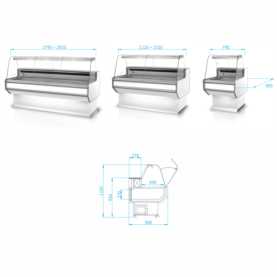 Lada chłodnicza, szyba gięta od 1 do 10 °C, 2010x900x(h)1220 mm