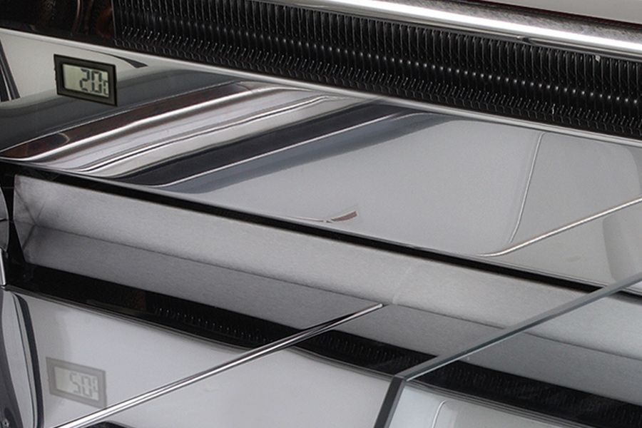 - Dzielone, wyjmowane dno ekspozycji ze stali nierdzewnej „lustro”