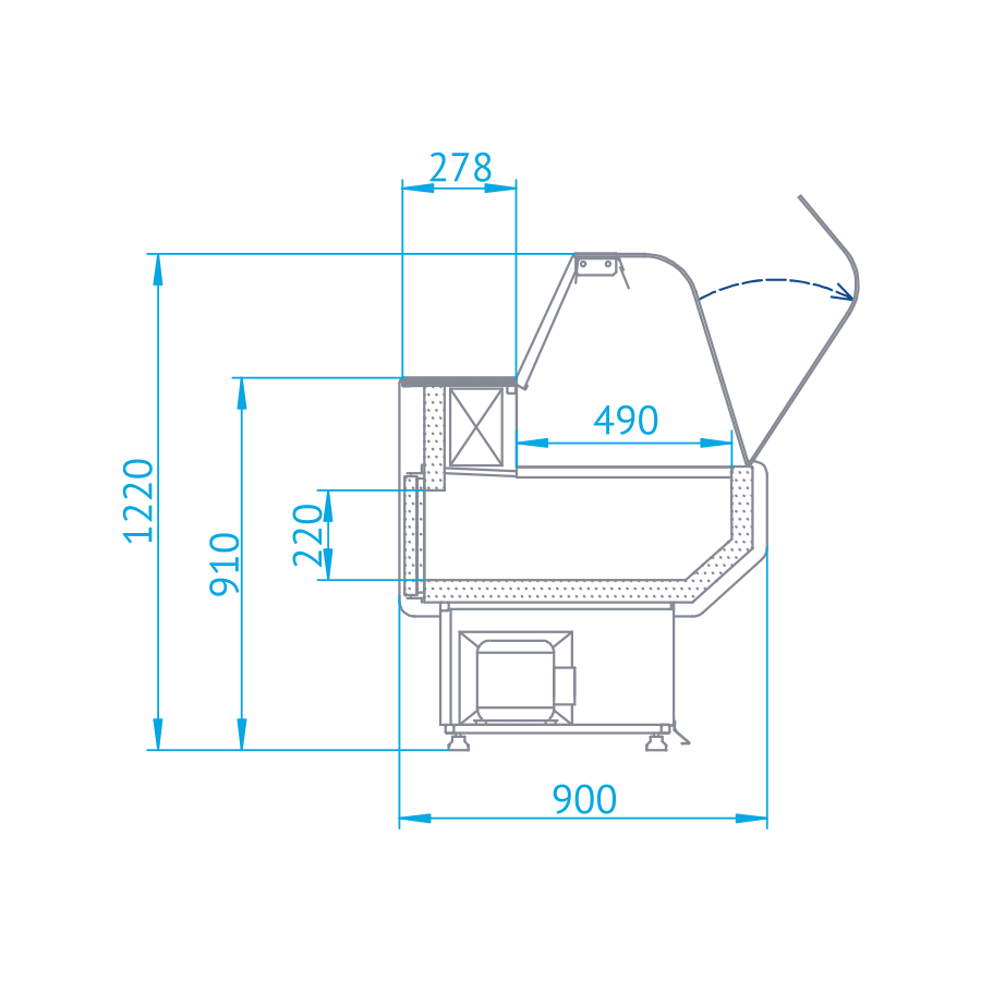 Lada chłodnicza, szyba gięta od 1 do 10 °C, 1790x1070x(h)1220 mm