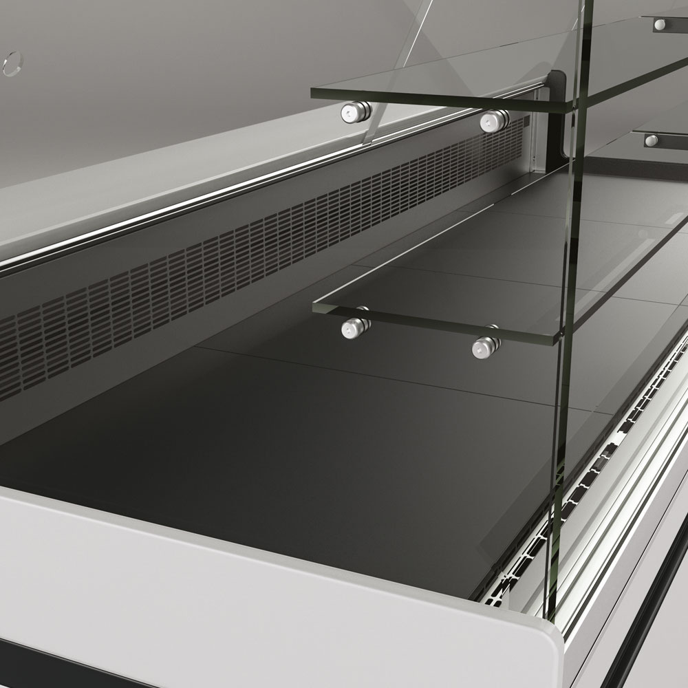 Wentylowane chłodzenie. Szyba o niskiej wysokości z jedną półką pośrednią. Ekspozycja EURONORM i GASTRONORM, płyty zdejmowane w kolorze ANTRACYT. Boki i przód z drewna, powierzchnia z melaminy i krawędzie z ABS, kolor BIAŁY (kod B), listwy przypodłogowe i listwa aluminiowa CHARCOAL-SZARY (kod 2). Tablet roboczy ze stali nierdzewnej Szyby hartowane (Extra Clear), szyba przednia otwierana i składana pod kątem 90° z ogranicznikiem bezpieczeństwa (łatwa konserwacja) i zintegrowaną w zawiasie funkcją przeciwmgielną (niskie napięcie 12V), szyby boczne ze zintegrowaną funkcją przeciwmgielną (niskie napięcie 12V) ), półka pośrednia w standardzie. Witryny EURONORM i GASTRONORM ze stali nierdzewnej AISI 304, z zaokrąglonymi narożnikami i krawędziami, o głębokości 604 mm, dostarczane w standardzie. Wyjmowane witryny wykonane ze stali nierdzewnej, malowanej kolorystycznie. Deflektor z plexi, umożliwiający równomierny rozkład temperatury. Półka pośrednia konstrukcji nośnej ze stali nierdzewnej AISI 304. Oświetlenie typu LED (dwurzędowe) z włącznikiem-wyłącznikiem. Strona serwisowa: Półka robocza ze stali nierdzewnej AISI 304 z zabezpieczeniem przeciw zamgleniu (niskie napięcie 12V) umieszczona pod spodem, przesuwane drzwiczki z pleksiglasu, wyprofilowane tak, aby pasowały do bocznych okien. Wbudowany agregat sprężarkowy, klasa klimatyczna 3. Czynnik chłodniczy R290. Wentylowany parownik zabezpieczony przed korozją spowodowaną kwasami spożywczymi. Automatyczne rozmrażanie z automatycznym odparowaniem kondensatu. Rama wykonana z plastyfikowanej blachy stalowej, izolacja z poliuretanu niezawierającego freonu, regulowane nóżki ze stali nierdzewnej (przesuwne) umożliwiające idealne dopasowanie (na zamówienie: AP = z urządzeniem podtrzymującym platformę „stopień serwisowy” lub SP = standard bez urządzenia). Urządzenie zabudowane zgodnie z obowiązującymi normami (CE).ZALETY:Wyróżnij swoje desery, torty, macarony ale także sałatki, kanapki, jogurty, napoje. Dzięki dużej powierzchni wystawowej w standardzie EURONORM i GASTRONORM oraz oświetleniu LED. Projekt MADE IN ITALY, dbałość o szczegóły i nienaganny wykończenie, witryna wyświetlająca Metrika zadowoli najbardziej wymagających. Linia Metrika oferuje kompletny program elementów do dostosowania, aby sprostać wszystkim specyficznym wymaganiom aranżacji food & bar.PLUS:Elastyczna konfiguracja (z zestawem montażowym). Wiele możliwości personalizacji, niskie lub wysokie okna, wybór materiałów do blatu roboczego, kolor boków, cokołu i ozdobnej listwy z aluminium (z możliwością integracji oświetlenia LED), kolor tacki wystawowej (antracytowy, biały lub stal nierdzewna). Zintegrowane parowanie parownika, urządzenie do odparowywania kondensatu, światło LED, zintegrowany system przeciwmgłowy. Na zamówienie: Elementy neutralne lub kątowe 90 ° i 45 °, zarówno otwarte, jak i zamknięte, dostępne również w wersji surowej (bez dekoracyjnej przedniej panelu, bez boków, cokołu).Podmiot odpowiedzialny (GPSR):