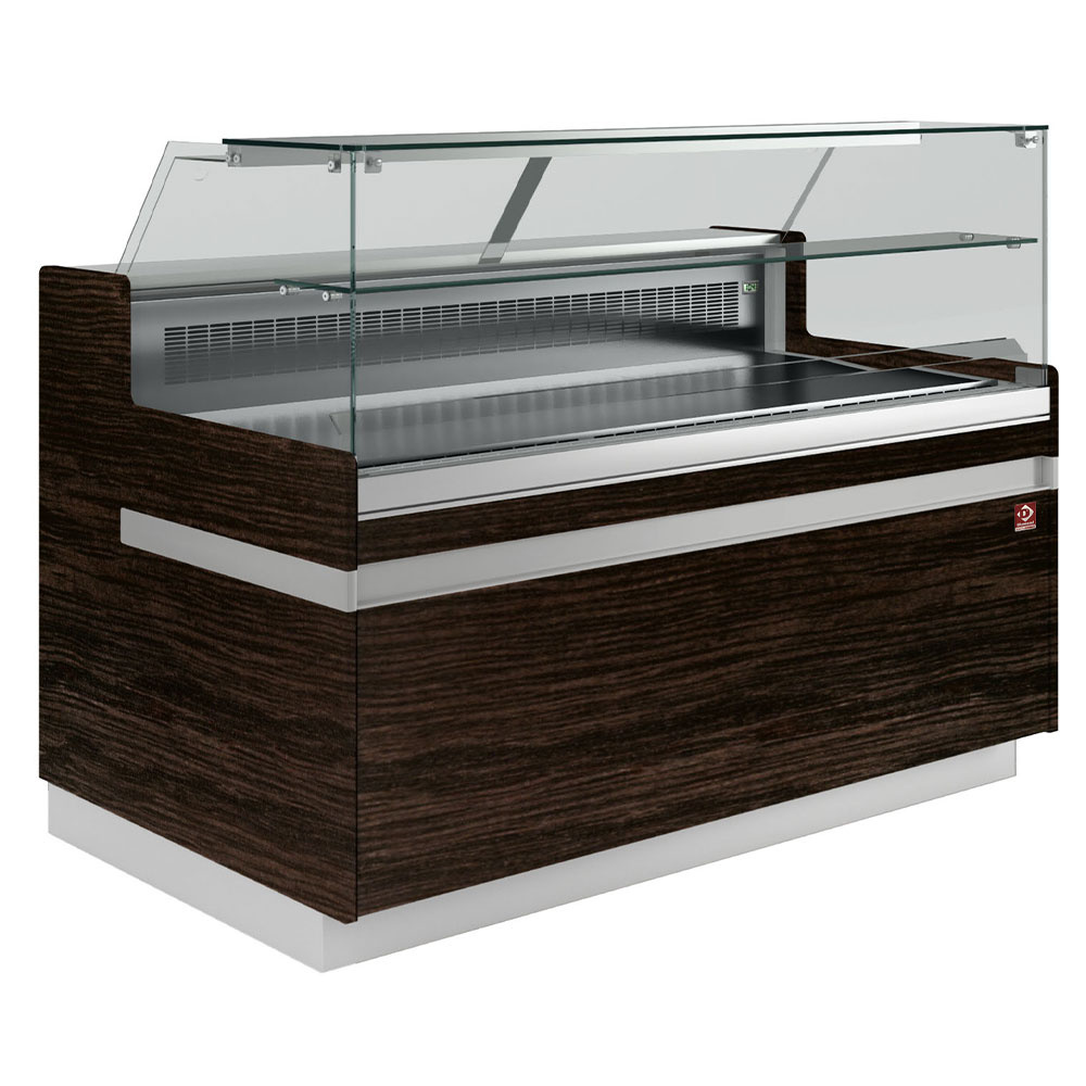 Lada chłodnicza, szyba prosta, niska od 2 do 6°C, 906x2538x(h)1182 mm, wentylowana, ciemne drewno