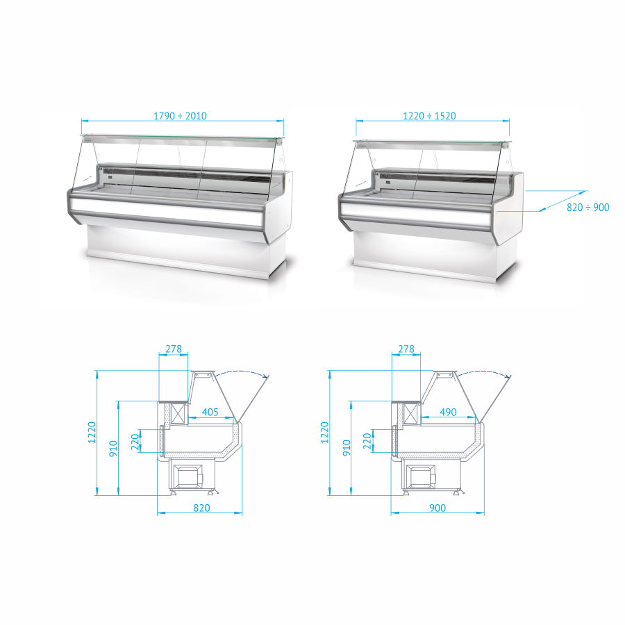 Lada chłodnicza, szyba prosta od 1 do 10 °C, 1370x820x(h)1220 mm