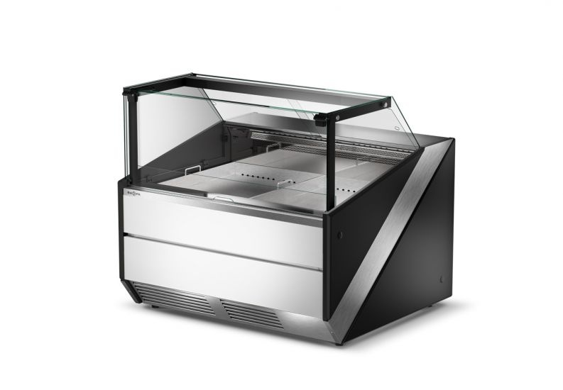 Ergonomiczne wnętrze witryny zostało wykonane z wysokiej jakości stali kwasoodpornej, co zapewnia wysoką funkcjonalność i łatwość pielęgnacji.Wygodna aranżacja ekspozycji