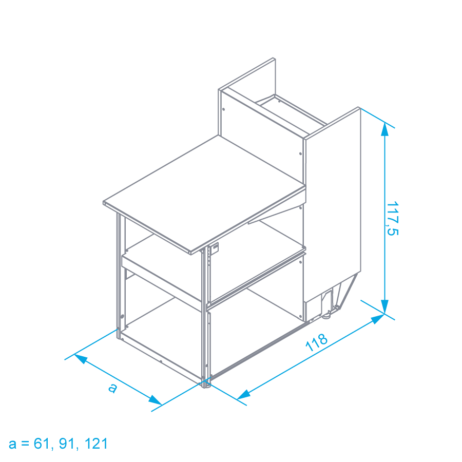 Lada kasowa prosty narożnik, 1300x1200x(h)1175 mm