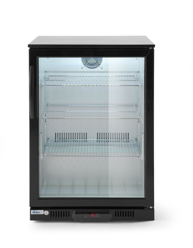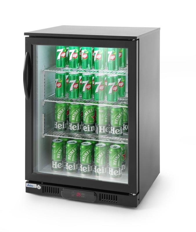 Chłodziarka barowa z drzwiami uchylnymi, od 2 °C do 10 °C, 105 L, czarna