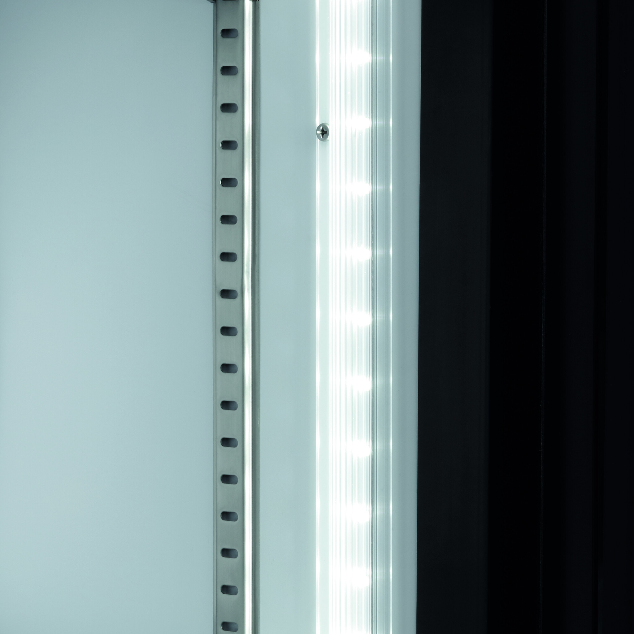 Połączenie lodówki i zamrażarki w jednym produkcie o atrakcyjnym, czarnym designie i pojemności 820 litrów. Szklane drzwi pozwalają spojrzeć na znajdujące się wewnątrz potrawy, które dzięki załączanemu oświetleniu LED są idealnie wyeksponowane.Podmiot odpowiedzialny (GPSR):