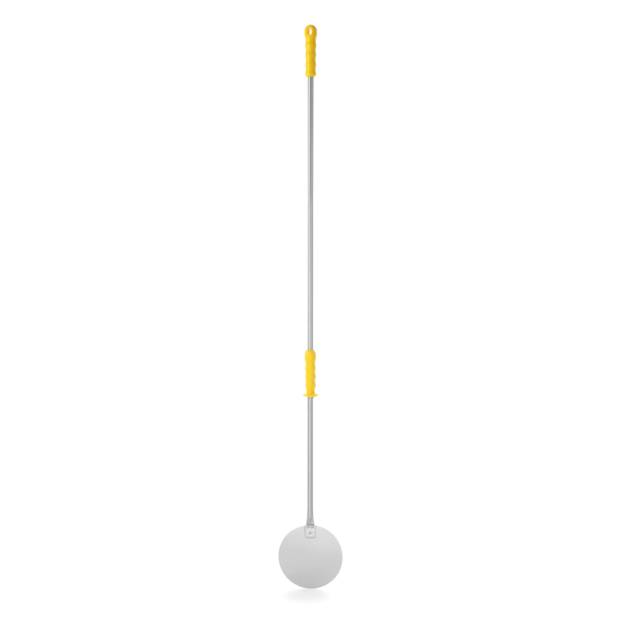 Łopata do pizzy ze stali nierdzewnej, Ø200x1700 mm, okrągła, żółta z ruchomym uchwytem