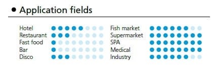 - doskonale nadaje się do produkcji łusek lodowych do ekspozycji ryb, produkcji piekarniczej itp