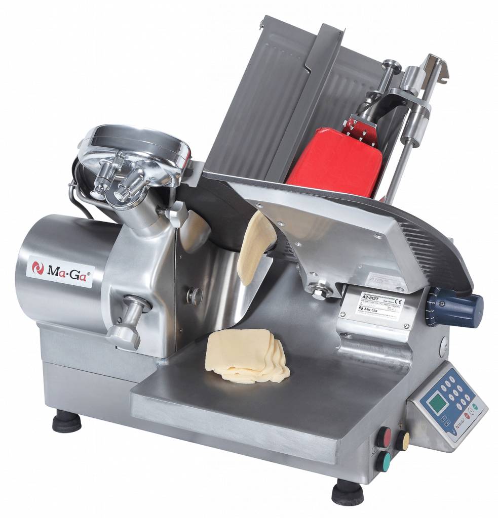 - w pracy automatycznej ze stałym skokiem krojenia i licznikiem krojonych plastrów jest precyzyjną maszyną umożliwiającą krojenie wszelkich wędlin (A2-812)oraz serów żółtych (A2-812T) na plastry różnej grubości