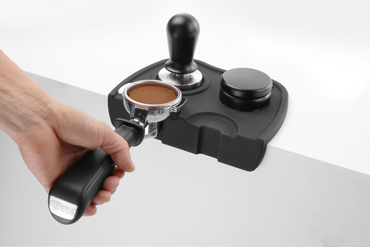 - Wykonana z silikonu, 2 wycięcia do umieszczenia kolby w czasie ubijania kawy