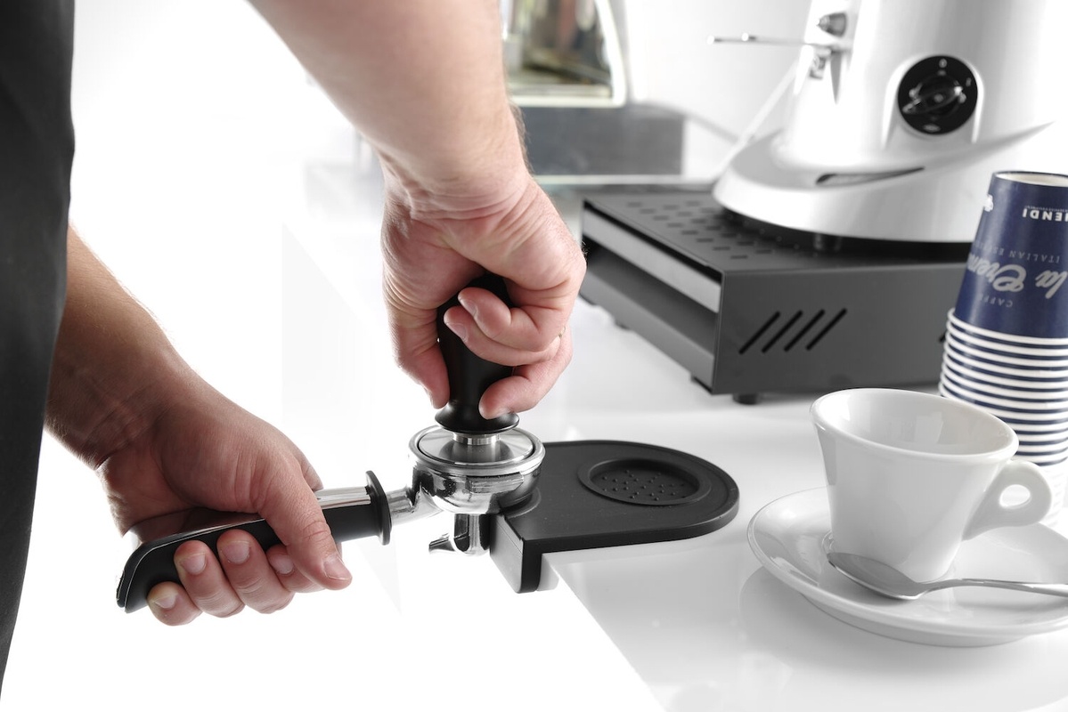 - Wykonana z silikonu, wycięcie do umieszczenia kolby w czasie ubijania kawy