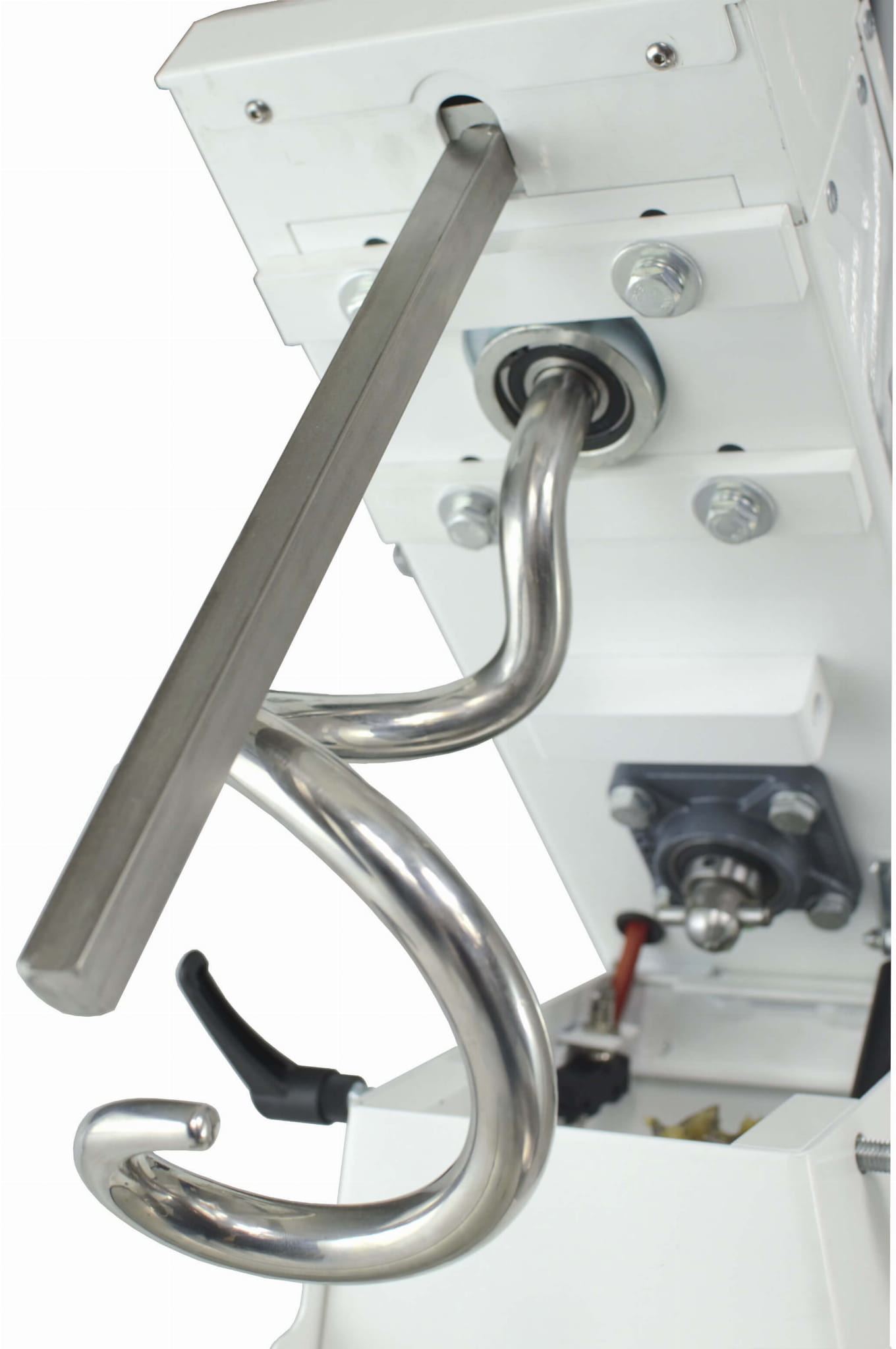 - Podnoszony hak umożliwia bardzo proste wyciągnięcie gotowego ciasta z dzieży.