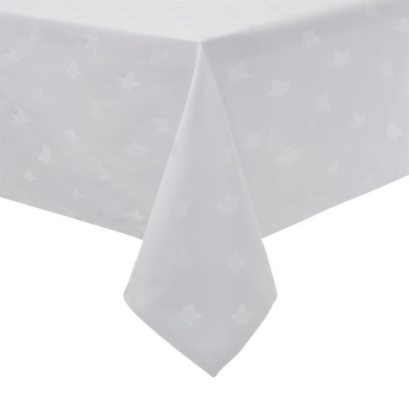 Obrus z białego, egipskiego adamaszku bawełnianego z atrakcyjnym motywem liści bluszczu. Bawełna jest merceryzowana dla dodatkowej wytrzymałości.