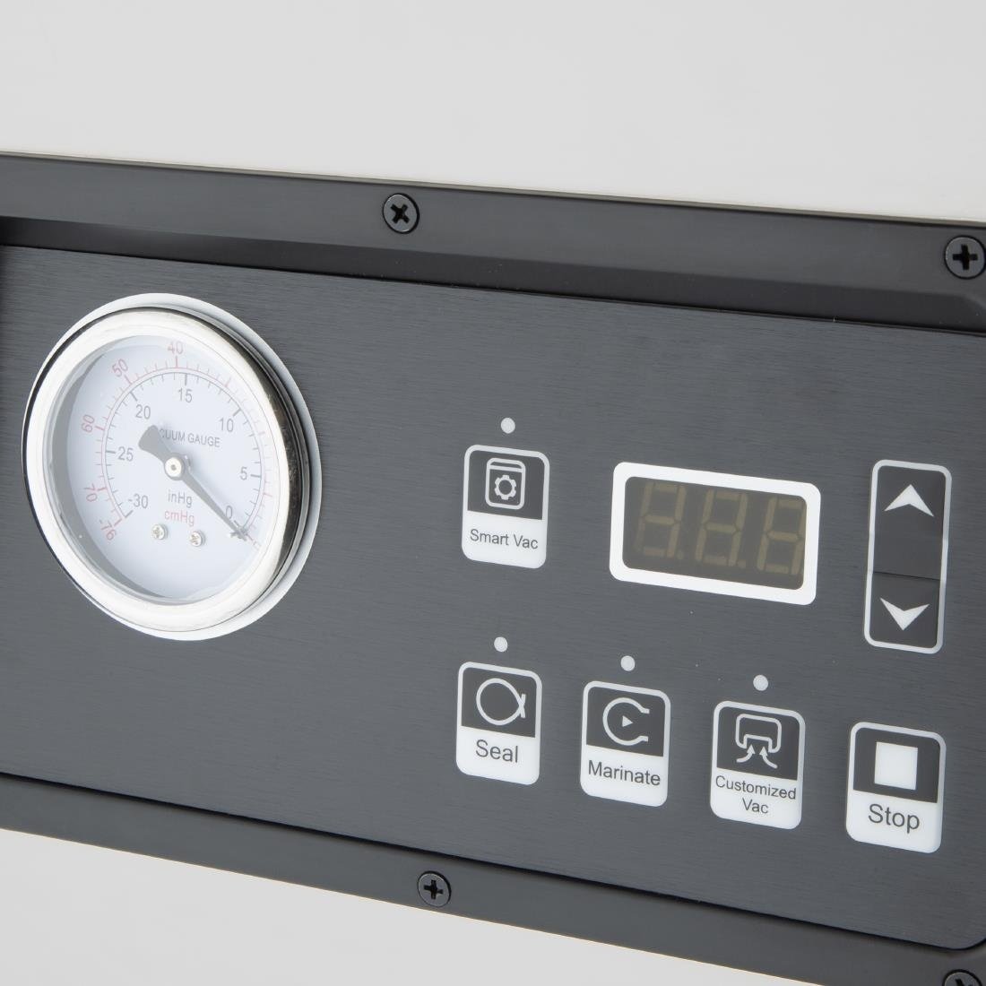 Dzięki dużej komorze próżniowej o pojemności 9 litrów i wydajnej pompie olejowej 800W, pakowarka Buffalo sprawia, że pakowanie próżniowe żywności jest szybkie i łatwe.