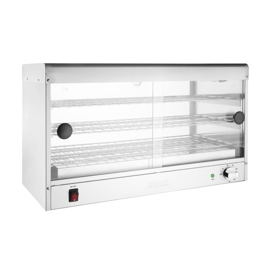 Nablatowa witryna grzewcza 30 do 90°C, 650W, z prostą szybą Buffalo CJ559, 363x744x(h)433 mm