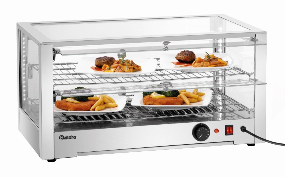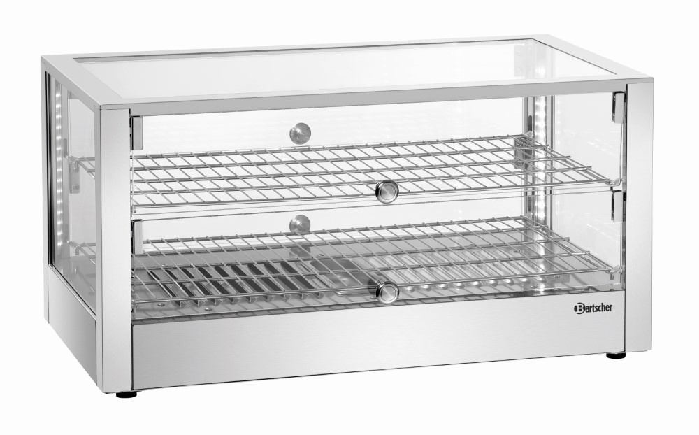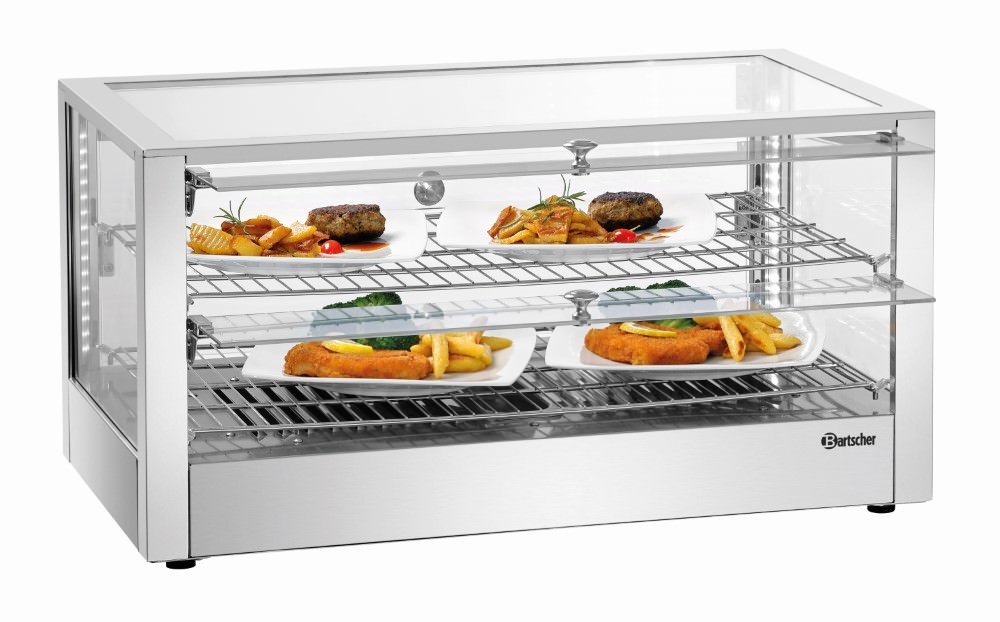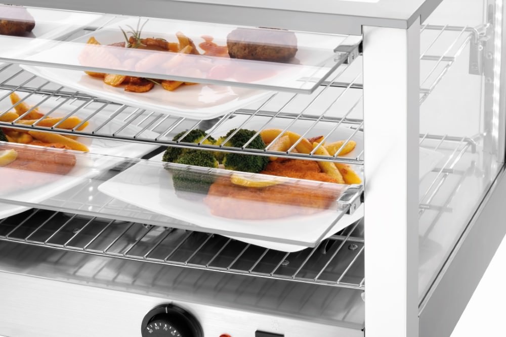 Nablatowa witryna grzewcza 80 L, 2-poziomowa, 1 kW, od 30 do 90 °C, srebrna