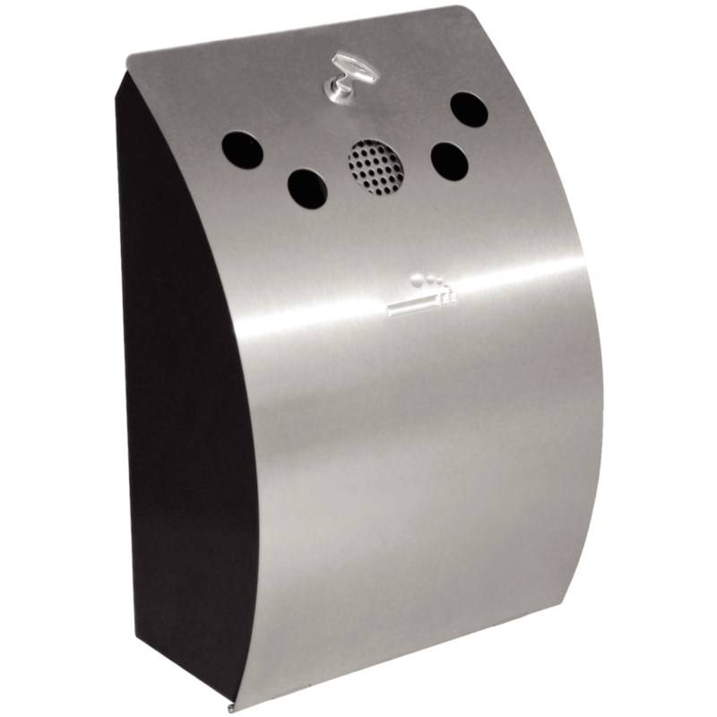 Naścienna popielniczka ze stali nierdzewnej o stylowym, zaokrąglonym wzorze, ma cztery otwory na papierosy. Nadaje się do użytku na zewnątrz w strefie dla palących, wyposażona w zamek oraz wyjmowany wewnętrzny pojemnik z galwanizowanej stali ułatwiający opróżnianie.