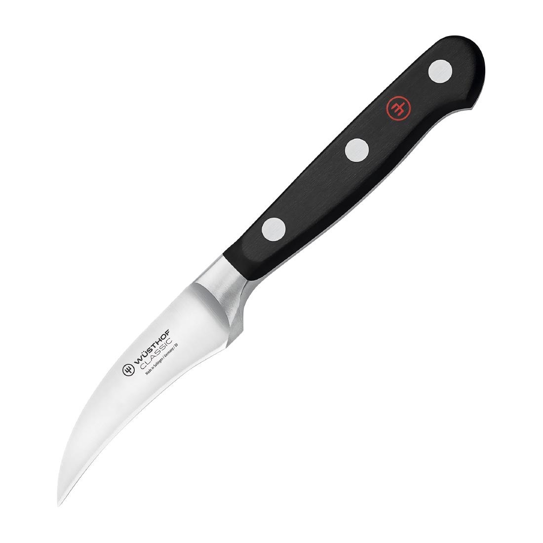 - Ten mały, poręczny nóż, zwany również nożem biurowym, jest idealny do obierania i czyszczenia okrągłych warzyw i owoców dzięki swojemu krótkemu, zakrzywionemu ostrzu