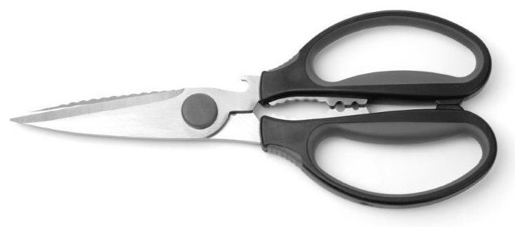 Uniwersalne nożyce kuchenne. Prezentowany wzór świetnie nadaje się zarówno do profesjonalnej kuchni, jak i do użytku domowego. Zostały zaprojektowane tak, aby ich użytkowania było maksymalnie komfortowe o czyszczenie nie sprawiało problemu.