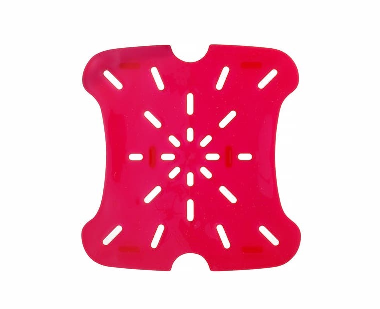 Wykonany z czerwonego polipropylenu, który nie chłonie zapachów, nie odbarwia się i zachowuje swoje właściwości w zakresie temperatur od −40°C do 70°C. Ociekacz jest w pełni odporny na typowe dla kuchni przemysłowej czynniki chemiczne i mechaniczne. Nadaje się do mycia w zmywarce, co ułatwia utrzymanie wysokiego poziomu higieny.Funkcjonalność