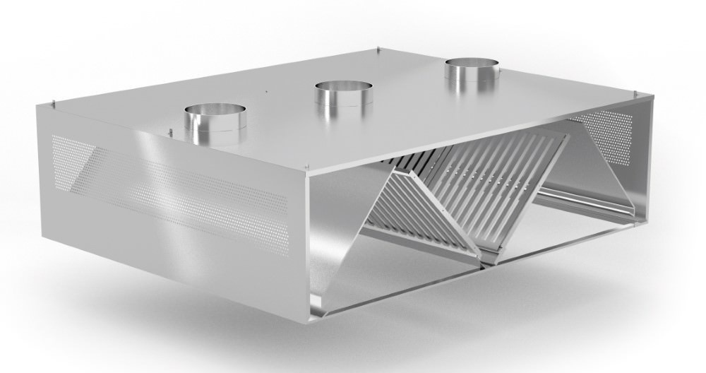 Okap centralny kompensacyjny ze stali nierdzewnej o wymiarach 1400x2000x(h)450 mm