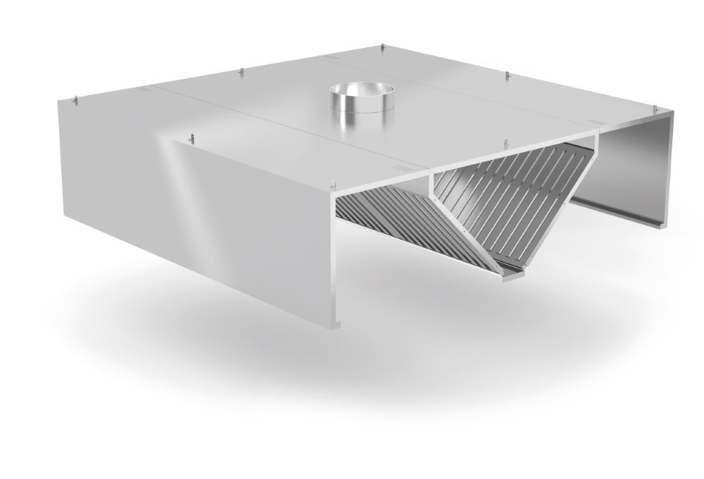 Okap centralny skrzyniowy ze stali nierdzewnej o wymiarach 1100x1800x(h)450 mm