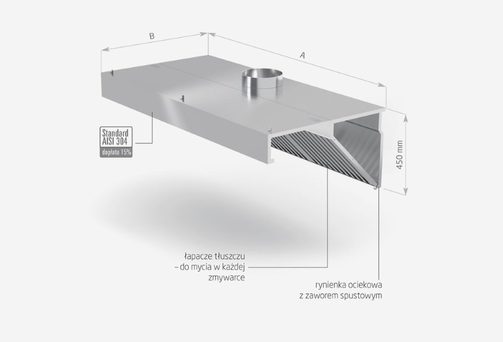 Okapy wywiewne wychwytują i odprowadzają ciepło, parę i zanieczyszczenia (głównie cząsteczki tłuszczu) powstające w procesie gotowania, smażenia i pieczenia w profesjonalnej kuchni, bez dodatkowego doprowadzenia świeżego powietrza. Wywiewane powietrze przepływa przez filtry (łapacze tłuszczu). Cząsteczki tłuszczu i zanieczyszczenia osadzają się na łapaczach i zostają odprowadzone do rynienki ociekowej okapu wywiewnego. Zawór spustowy przy rynience ociekowej umożliwia spuszczenie tłuszczu i zanieczyszczeń.