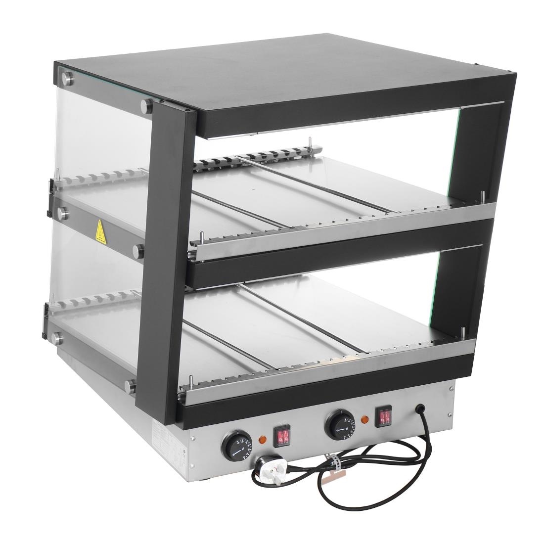 Wyposażony w dwie podgrzewane półki, każda z regulowanymi przegrodami, zapewnia wystarczająco dużo miejsca na Twoje zapakowane jedzenie w różnych kształtach – hamburgery, wrapy z kurczakiem, burrito i inne są łatwe do przechowywania i utrzymywania w cieple aż do momentu zamówienia. A ponieważ każda półka ma niezależne sterowanie, możesz utrzymywać żywność na każdej z nich w różnych temperaturach lub nawet wyłączyć jedną półkę w spokojniejszych godzinach, aby zmniejszyć koszty operacyjne.
