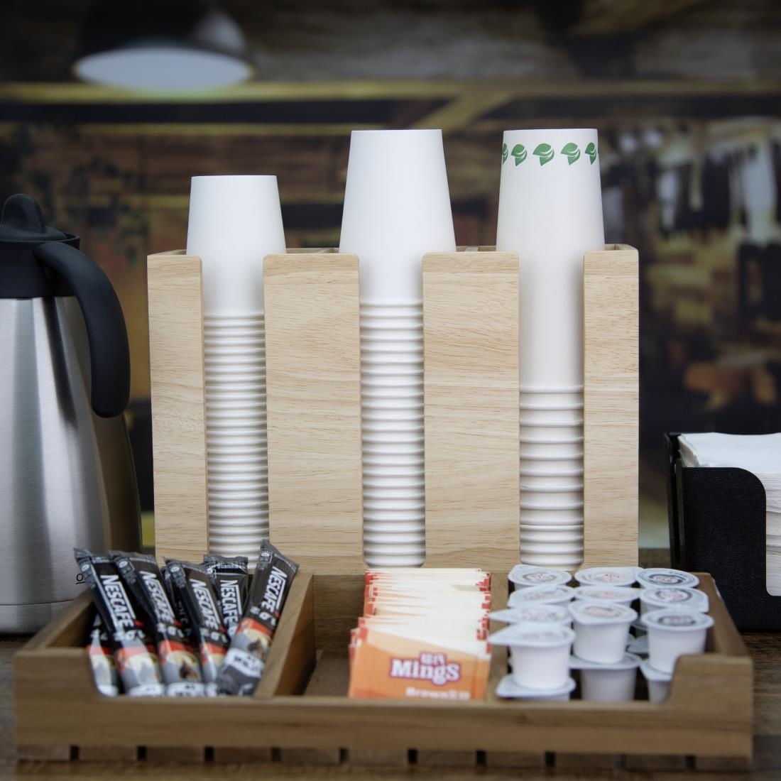 Utrzymuj jednorazowe kubki do kawy w porządku i zawsze pod ręką dzięki drewnianemu stojakowi na kubki Olympia