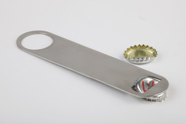 Otwieracz barmański wykonany z satynowanej stali nierdzewnej. Można myć w zmywarkach.