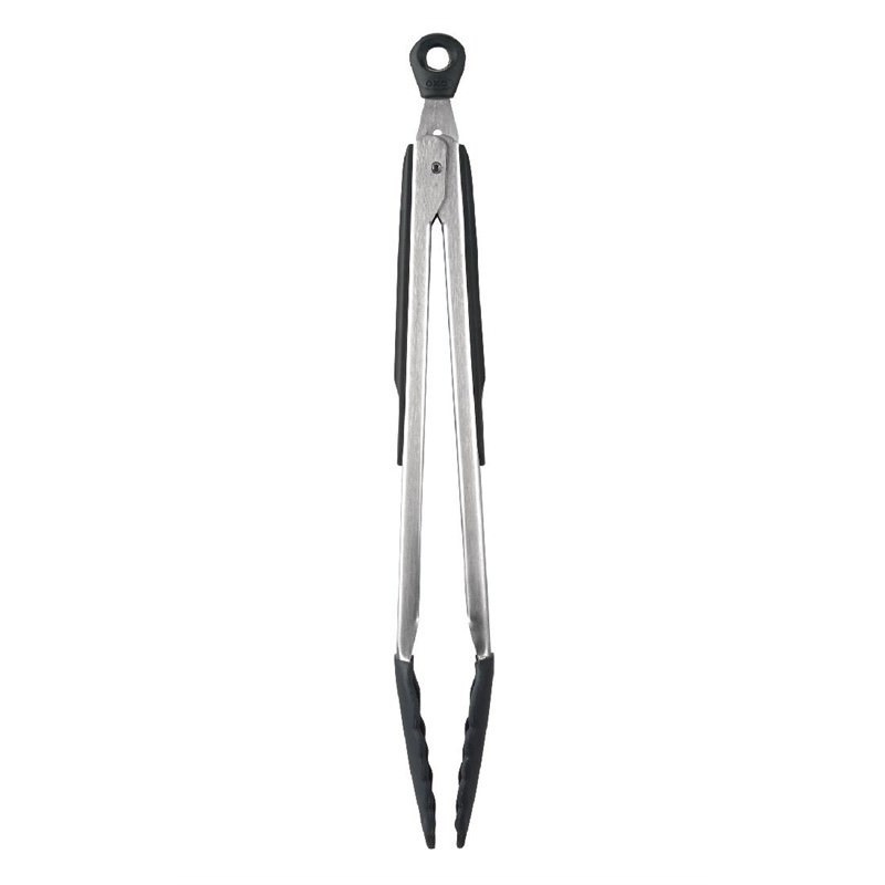 Wszechstronne szczypce do serwowania posiadają antypoślizgowy uchwyt i nieprzywierające końcówki, odporne na temperaturę do 310 °C. Przybór wyposażono w blokadę. Jest dostosowany do czyszczenia w zmywarce.