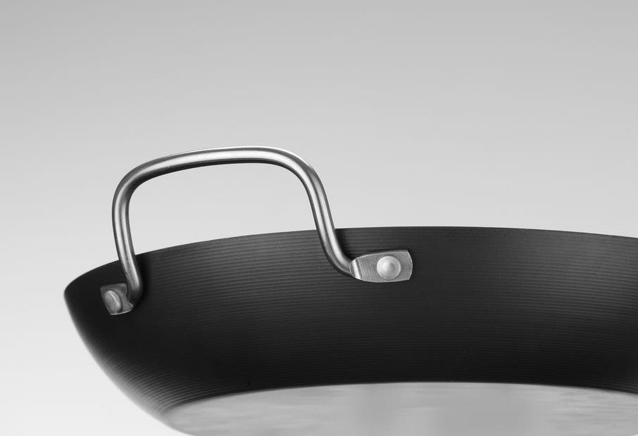 Patelnia wykonana została z jednego elementu stali węglowej o grubości 1,5 mm. Średnica robocza naczynia to 260 mm, a średnica podstawy 185 mm. Wysokość całkowita wynosi 78 mm, z czego przestrzeń wewnętrzna to 48 mm – umożliwia to przygotowanie dań o większej objętości, także tych z sosem lub zapiekanych. Waga całkowita wynosi 0,804 kg.