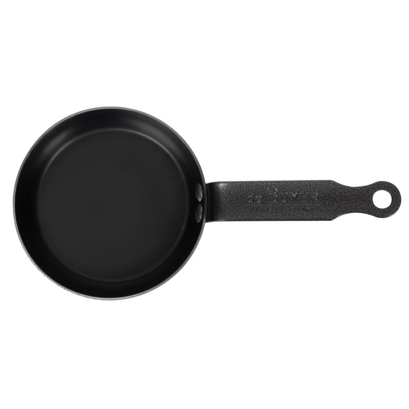 Mini patelnia De Buyer o średnicy 12 cm to idealny wybór do przygotowywania blinów, małych naleśników oraz przystawek. Wykonana z wytrzymałej niebieskiej stali węglowej, zapewnia równomierne rozprowadzanie ciepła, co przekłada się na doskonałe efekty kulinarne. Patelnia przeznaczona jest do wcześniejszego wypalenia, co nadaje jej naturalne właściwości nieprzywierające i wzbogaca smak potraw.