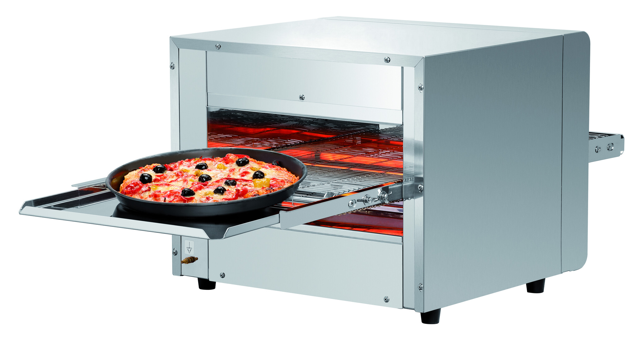 Pizza i przekąski prosto z taśmy: dzięki przelotowemu piecowi do pizzy upieczemy nie tylko ten włoski klasyk, ale i bagietki z dodatkami, a także tosty. Indywidualna regulacja prędkości taśmy transportowej sprawi, że każde danie będzie pyszne i chrupiące.Podmiot odpowiedzialny (GPSR):