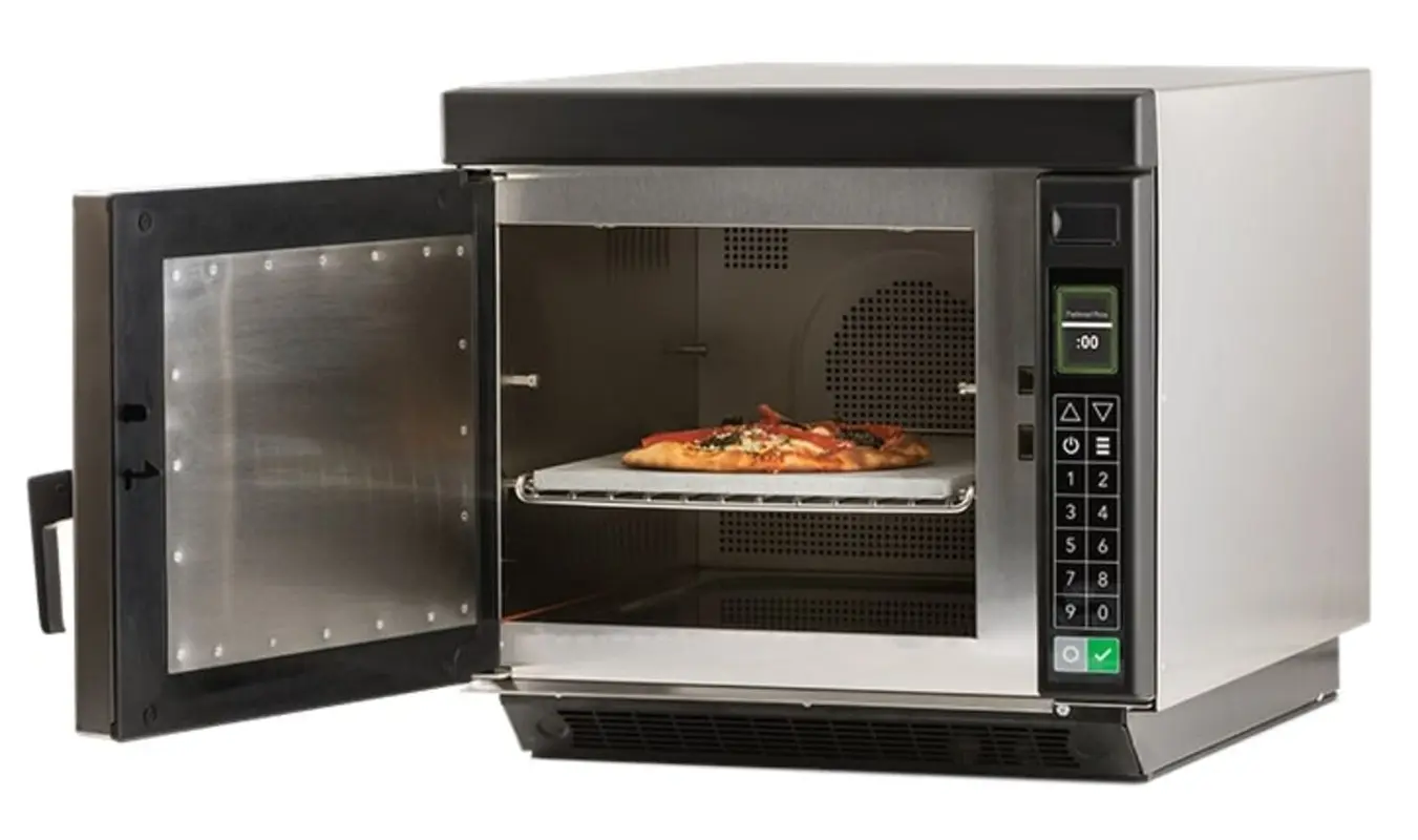 Obudowa oraz komora zostały wykonane ze stali nierdzewnej, co zapewnia trwałość i higienę użytkowania. Piec oferuje konwekcyjne pieczenie o mocy 2700 W oraz górną antenę magnetronu mikrofalowego o mocy 1400 W, która gwarantuje równomierne rozprowadzenie energii. Dzięki 11 poziomom mocy i funkcji rozmrażania (mikrofale) możliwe jest precyzyjne dopasowanie parametrów do rodzaju potrawy. Komora o pojemności 34 litrów i wymiarach 330x381x(H)267 mm mieści pizzę do 30 cm średnicy oraz naczynia o maksymalnej wysokości 38 mm.