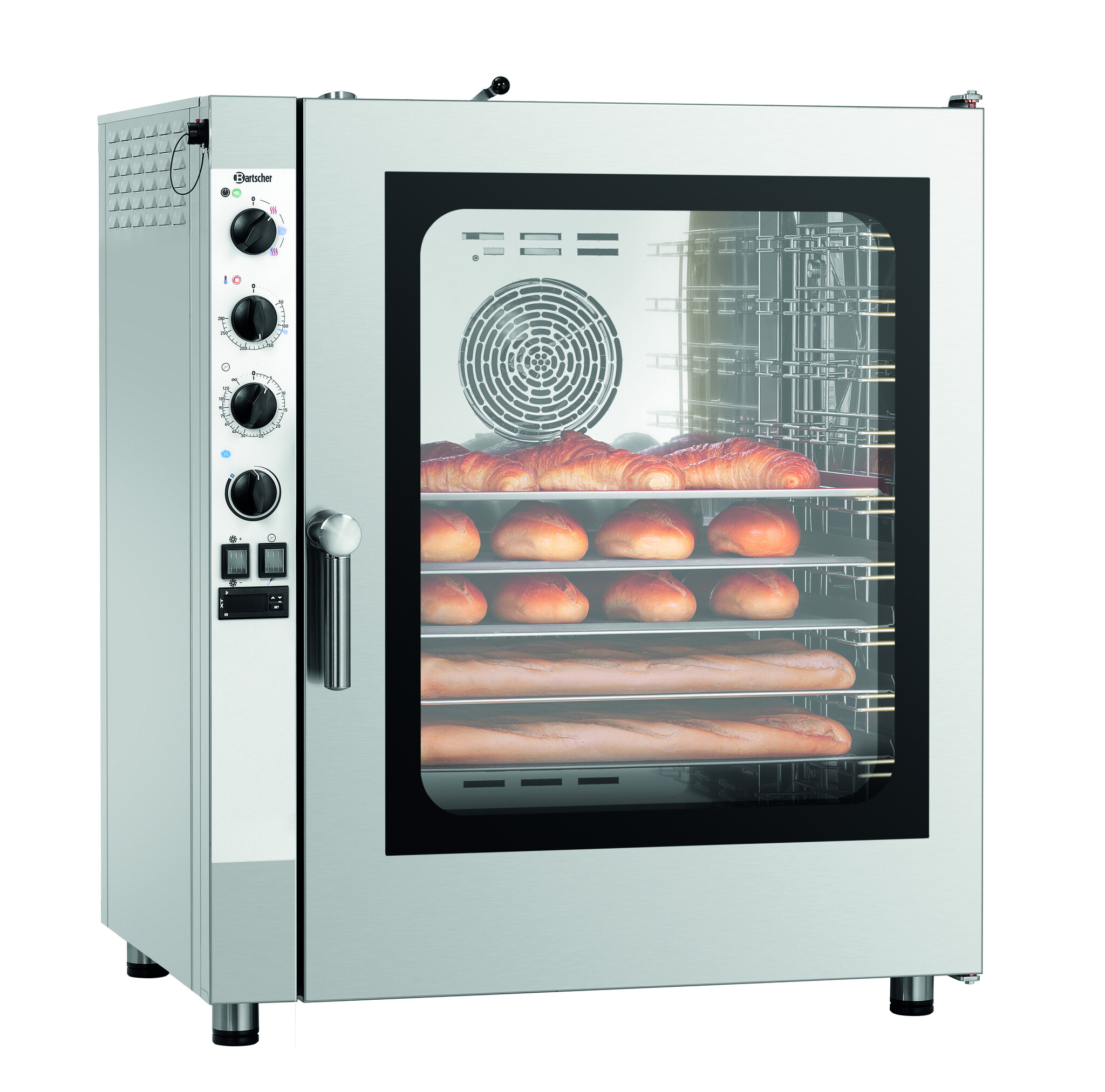 Piec konwekcyjno-parowy marki Bartscher z serii Silversteam z 10 parami prowadnic w formacie 1/1 GN – idealny partner w każdej kuchni. Obsługa ręczna zapewnia nieskomplikowane sterowanie wszystkimi procesami obróbki termicznej w zależności od potrzeb.Podmiot odpowiedzialny (GPSR):