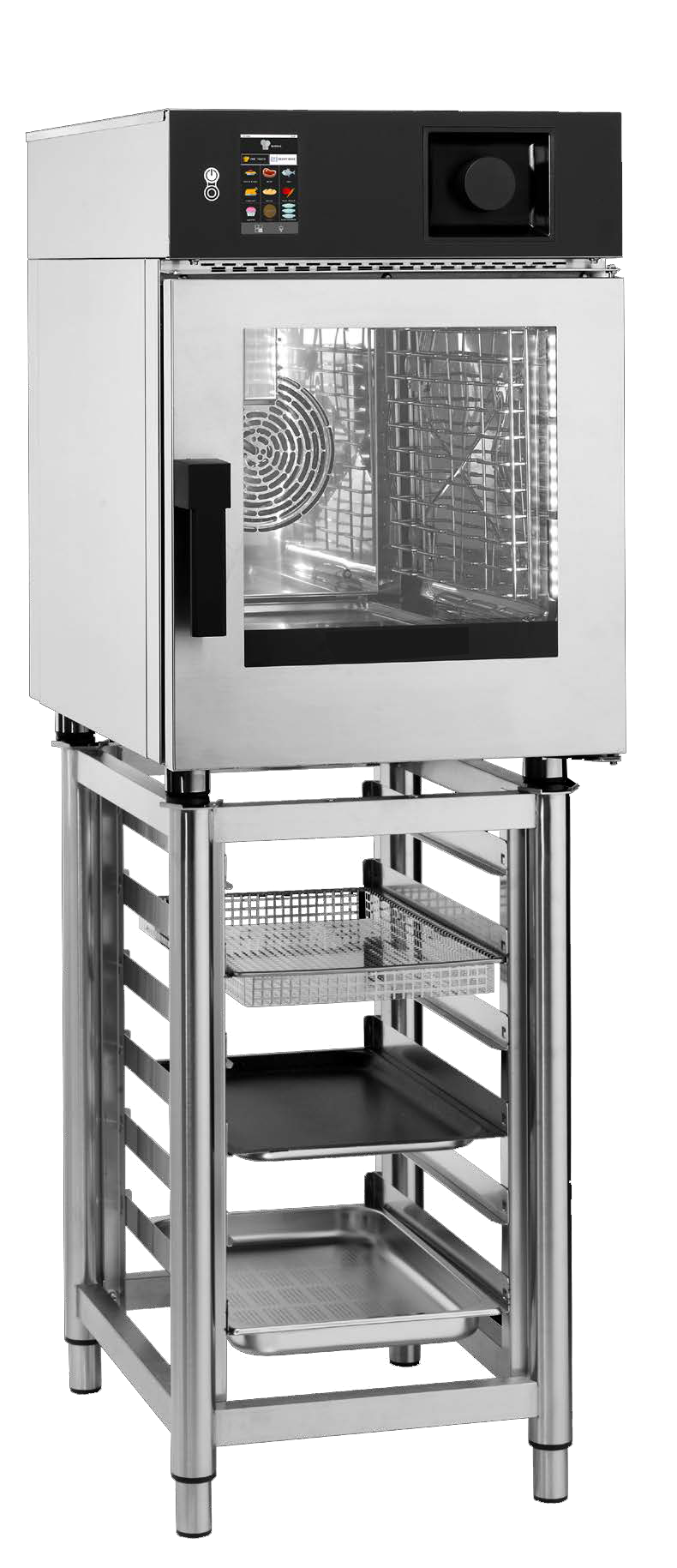 - OPCJE: sonda temperatury potrawy, prysznic, okap kondensacyjny, zestaw do piętrowania pieców, lewostronne otwieranie drzwi
