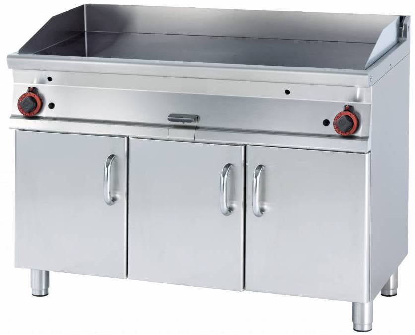 Gazowa płyta grillowa 1160 x 510 mm, gładka/ryflowana, 2 strefy grzewcze, 21 kW na podstawie z szafką