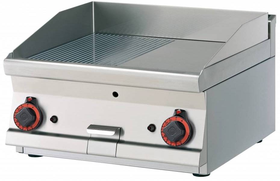 Gazowa płyta grillowa 595 x 450 mm, gładka/ryflowana, 2 strefy grzewcze, 9 kW, nastawna