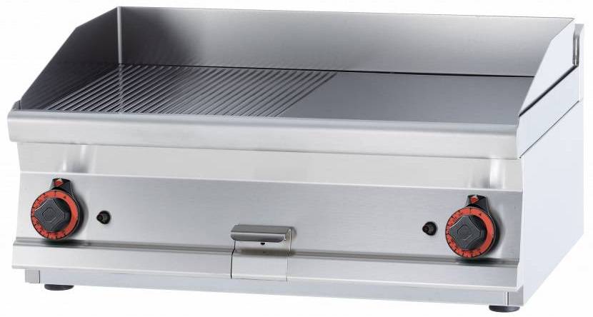 Gazowa płyta grillowa 795 x 450 mm, gładka/ryflowana, superchromowana, 2 strefy grzewcze,12 kW, nastawna