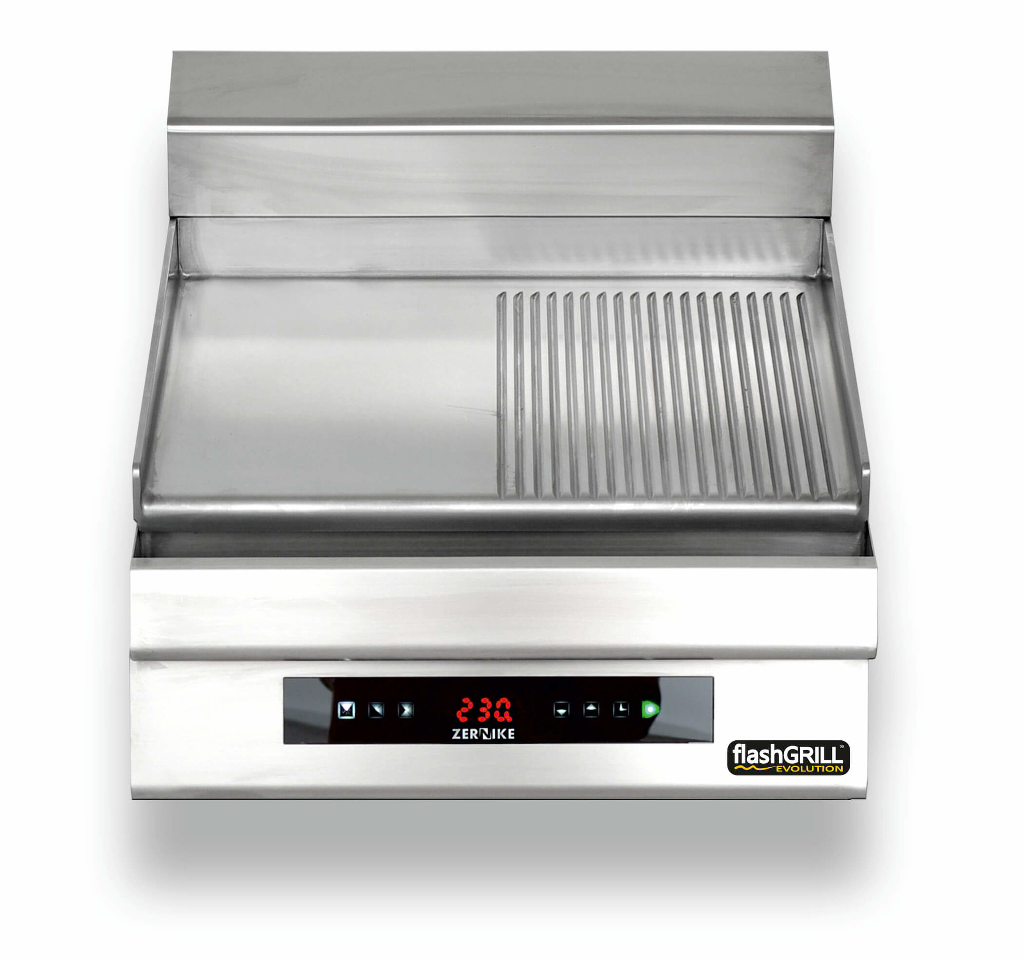 Elektryczna płyta grillowa gładka/ryflowana, 2,7 kW, 400V, nastawna z cyfrowym wyświetlaczem