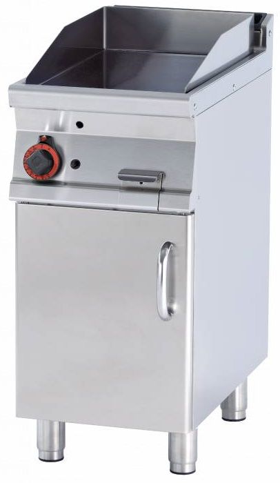 Gazowa płyta grillowa 360 x 510 mm, ryflowana, 7 kW na podstawie z szafką