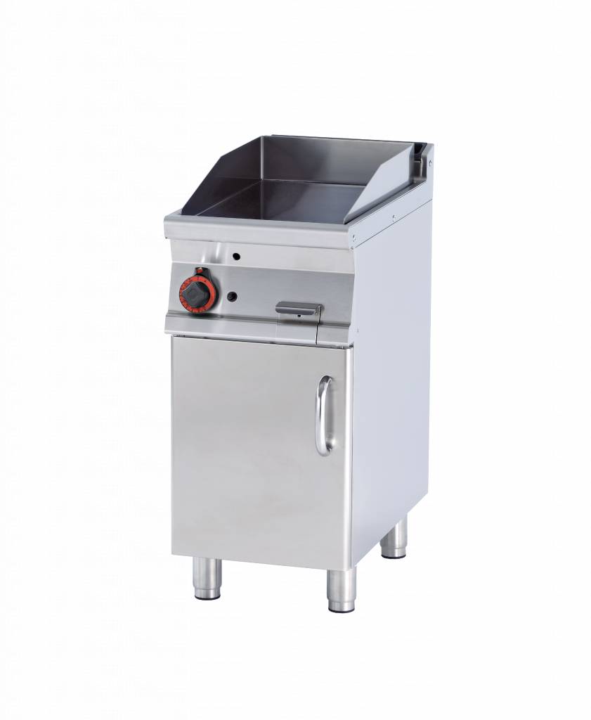 Gazowa płyta grillowa 360 x 510 mm, ryflowana, superchromowana, 7 kW na podstawie z szafką