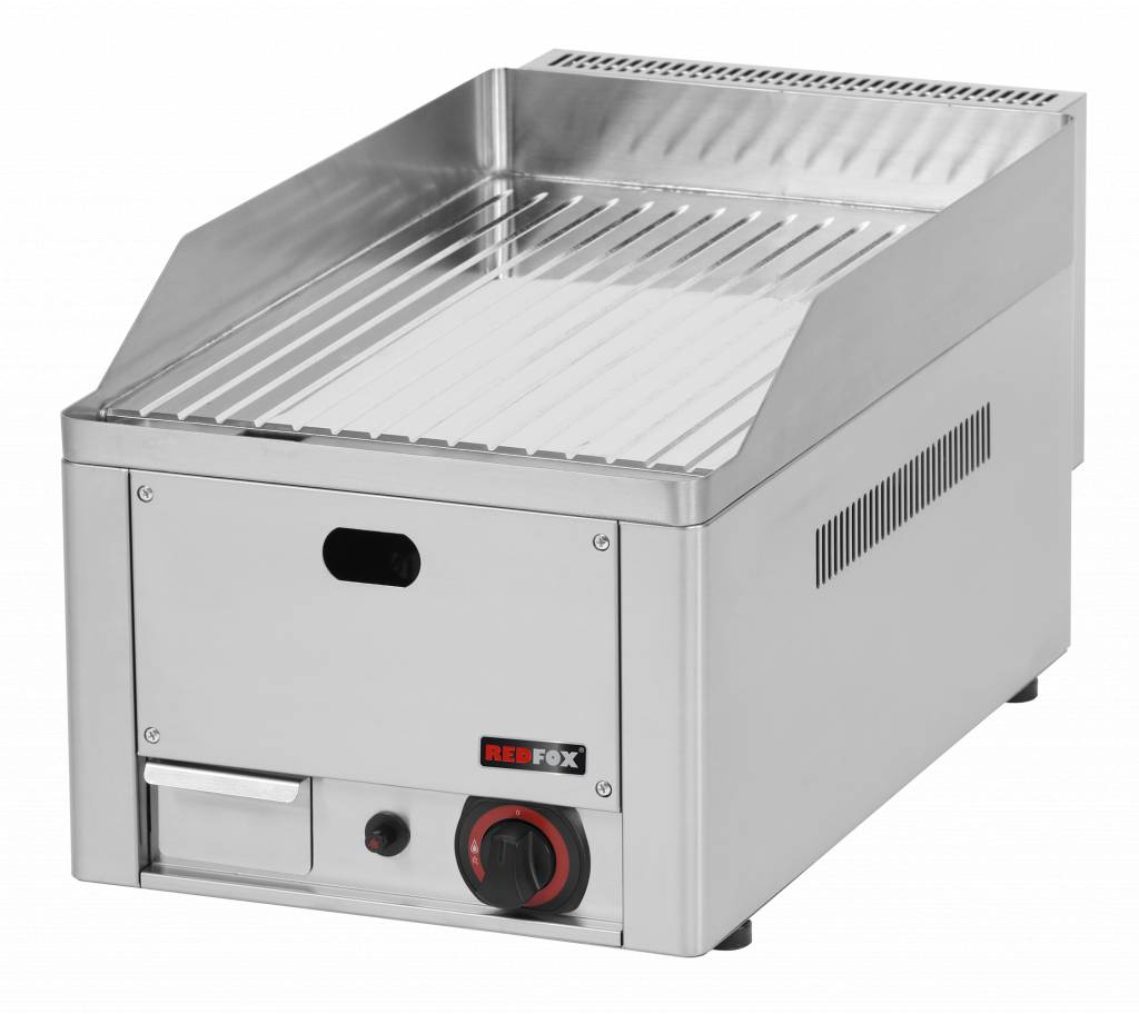 Gazowa płyta grillowa 330 x 480 mm, ryflowana, chromowana, 4 kW, nastawna