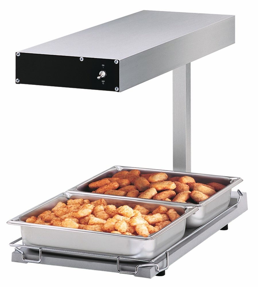 Blatowy nagrzewacz do potraw przeznaczony do pracy w bufetach, punktach cateringu, restauracjach i hotelach. Utrzymuje dania w optymalnej temperaturze bez ryzyka przesuszenia. Dzięki zastosowaniu promiennika podczerwieni ogrzewa żywność równomiernie, nie wpływając negatywnie na jej konsystencję ani smak.