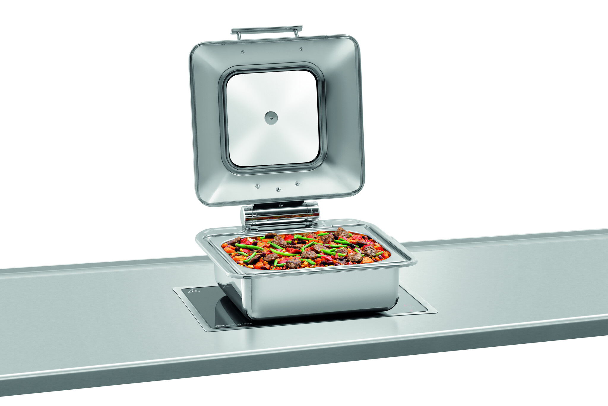 Płyta indukcyjna lub ceramiczna – podgrzewacz do potraw w formacie 2/3 GN do uniwersalnego stosowania na zintegrowanej płycie kuchennej. Zdejmowana pokrywa ułatwia wymianę pojemnika GN przy bufecie, na stołówce lub w strefie gotowania na oczach gości.Podmiot odpowiedzialny (GPSR):