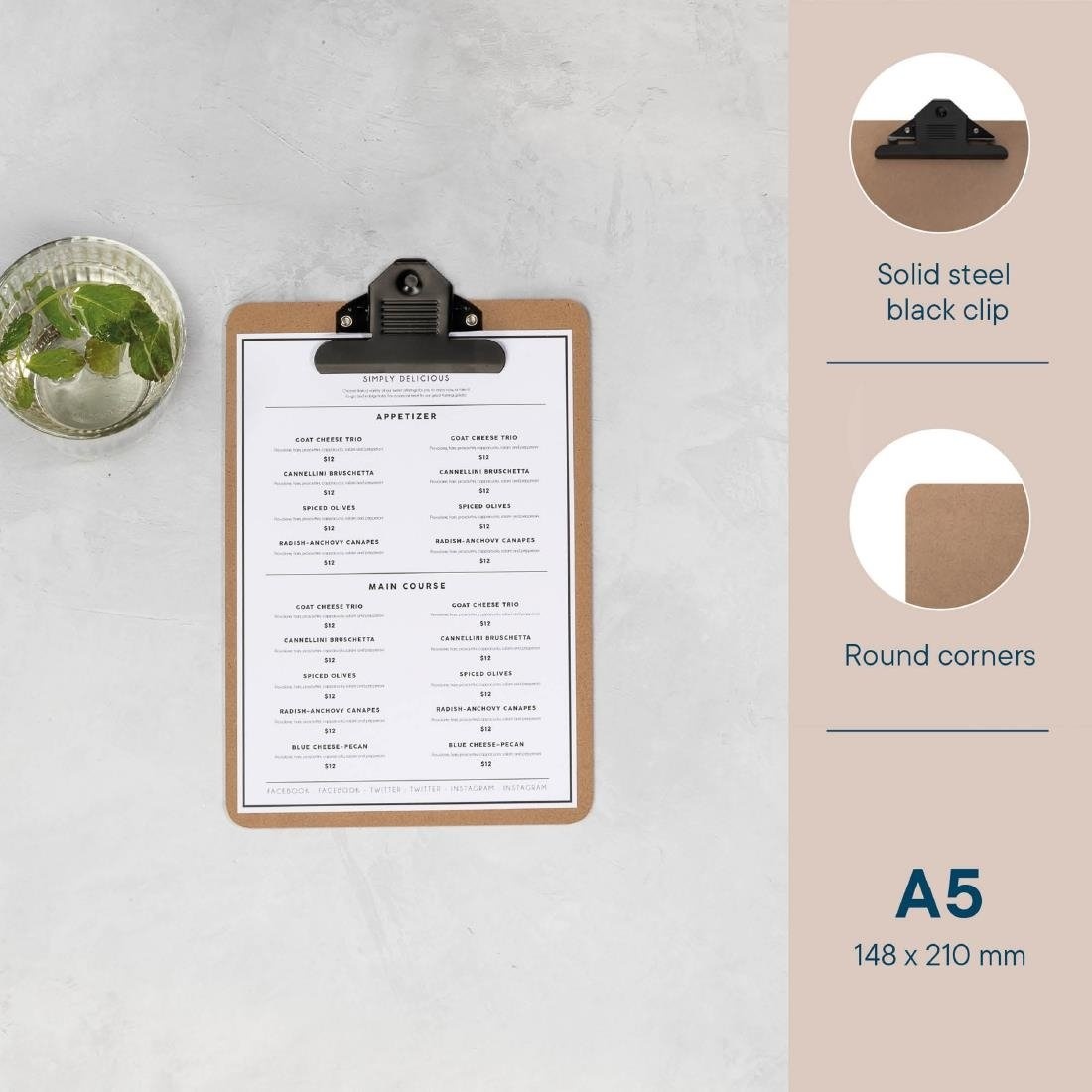 - Bezpieczny chwyt: Drewniana deska z klamrą jest wyposażona w czarny metalowy klips papierowy (75 mm), który trzyma ważne dokumenty na miejscu i schludnie je organizuje.