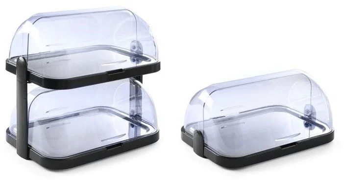 Witrynka bufetowa chłodząca dwupoziomowa prostokątna z pokrywą roll-top 320 x 440 mm