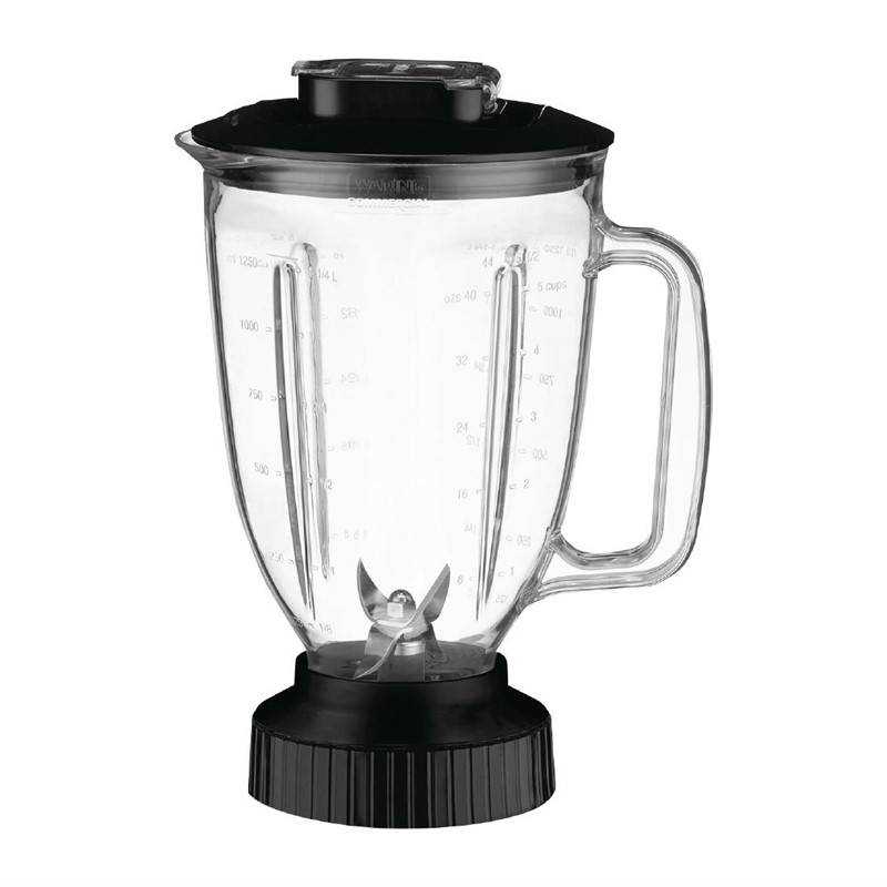 Zapasowy pojemnik do blendera barowego od firmy Waring. Doskonale pasuje do urządzenia i jest wyposażony w nóż ze stali nierdzewnej wysokiej jakości, który z łatwością przetwarza lód, owoce, warzywa itp.