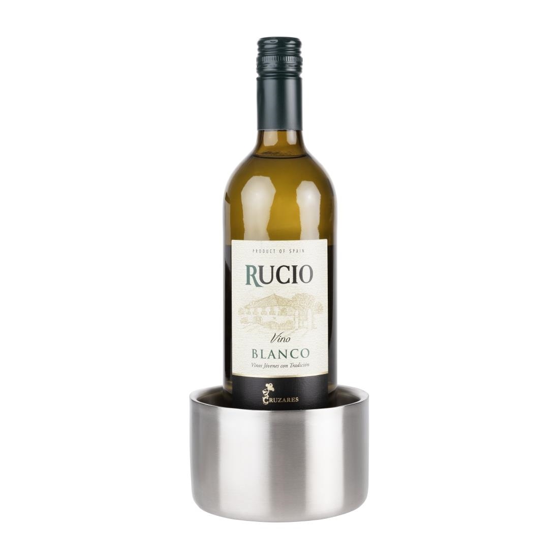 116(Ø)x70(H)mm | 4 1/2(Ø)x2 3/4(H) Podawaj szampana w eleganckim stylu dzięki tej wyrafinowanej podstawce pod butelki ze stali nierdzewnej marki Olympia. Idealna do każdej aranżacji stołu; podstawka nie tylko dodaje odrobiny klasy, ale także chroni stół lub obrus przed rozlaniem. Zaprojektowana tak, aby pasowała do standardowych butelek szampana i wina, ma średnicę 116 mm. Podwójne ścianki pomagają dłużej utrzymać chłód butelki, a solidna podstawa zmniejsza ryzyko przewrócenia lub wgnieceń. Dla większej wygody nadaje się również do mycia w zmywarce.